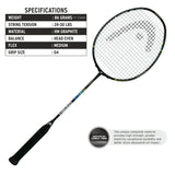 HEAD Octane pro-Badminton Racquet is designed for advanced tournament players who need optimized power. It features high-grade carbon fibres which are further reinforced by glass fibre providing greater stability and optimized energy transfer for more power. This unique composite material provides high strength, greater elasticity, exceptional durability and better shock absorption on impact