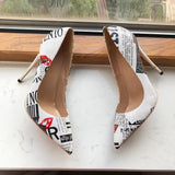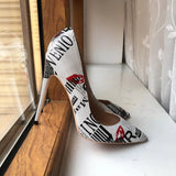 Elevate your shoe game to new heights with our stunning Graphic Print White Pointy Toe High Heel Shoes! These aren't just shoes; they're a statement, a fusion of classic design with a fashion-forward twist that suits any occasion. Crafted from high-quality materials, these shoes are not only stylish but also built for comfort, ensuring you strut with confidence all day long.