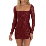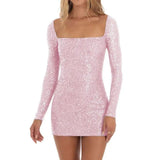 Introducing our dazzling Sequin Square Long Sleeve Mini Dress!
