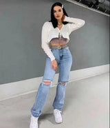 Women's Loose Fit Jeans Ripped Wide Leg