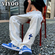 Featuring an eye-catching print, these white jeans are designed to make a statement wherever you go. The straight leg construction ensures a flattering cut, while providing ample room for movement and comfort. Whether you're teaching, exploring the city, or simply hanging out with friends, these trousers are sure to keep you looking effortlessly stylish.