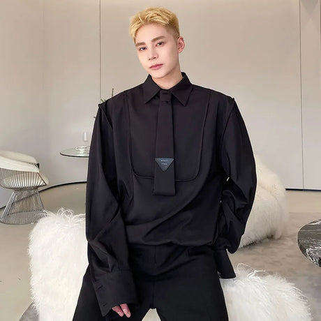 IEFB Men's Shirts Tie Niche Design Pullover Lapel Long Sleeve Tops
