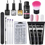 French Nail Art Poly Gel Kit with UV Brush and Nail Tips