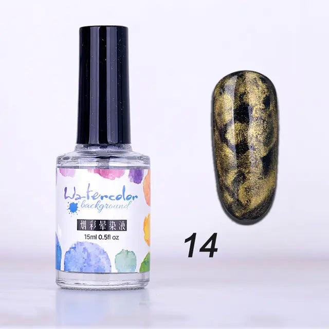Elevate your nail art to a new level with our Watercolor Nail Ink, the secret to achieving captivating marble effects and one-of-a-kind nail designs. Tailored for the artistic nail enthusiast, this nail ink harnesses the power of NO.2 transparent color to create mesmerizing marble patterns. While NO.2 may seem unassuming on its own, it's an indispensable component in your nail art arsenal. Our nail smudge liquid empowers you to seamlessly blend colors, whether you're aiming for monochromatic subtlety or a burst of multi-color creativity. Achieve effortlessly natural smudges or let your imagination run wild with personalized nail art. For the best results, remember to give the bottle a good shake before use to ensure uniform and stunning colors. With Watercolor Nail Ink, the possibilities are limitless, allowing you to express your unique style with every nail masterpiece.