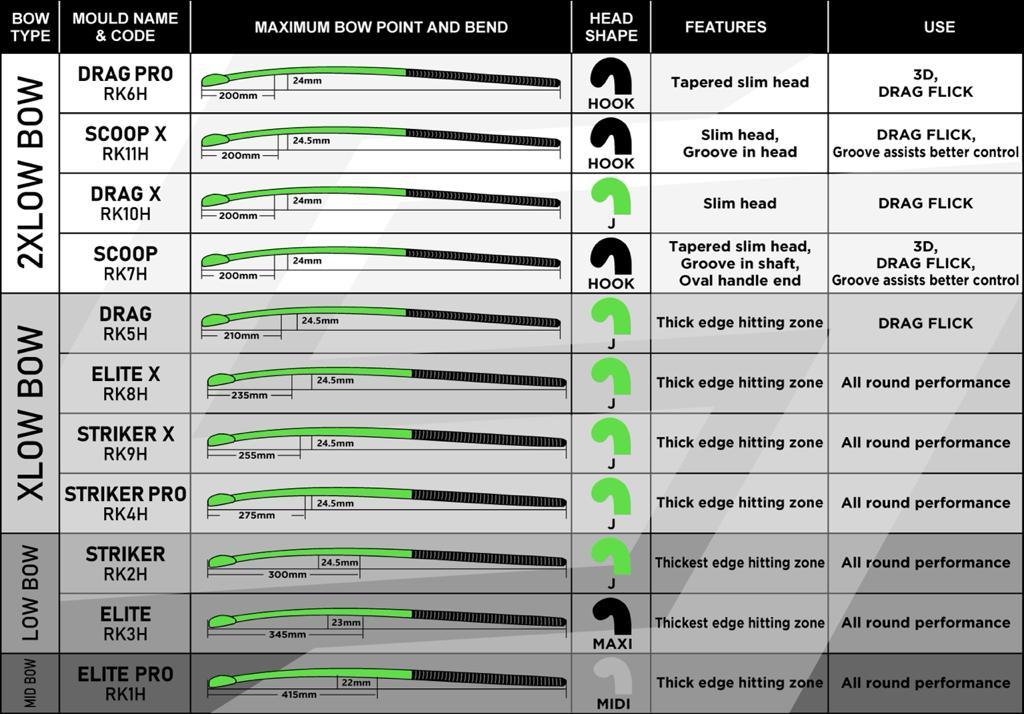 - An ideal stick for a player looking for a stick with an extreme low bow for drag flicking, and a slim head for better ball control.