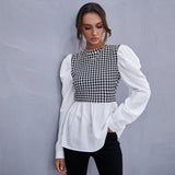 Elevate your style game with our latest must-have piece: The Vintage Patchwork Plaid Blouse! This stunning garment isn't just a blouse, it's a statement-maker, designed to catch eyes and turn heads wherever you go this season.