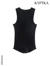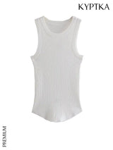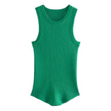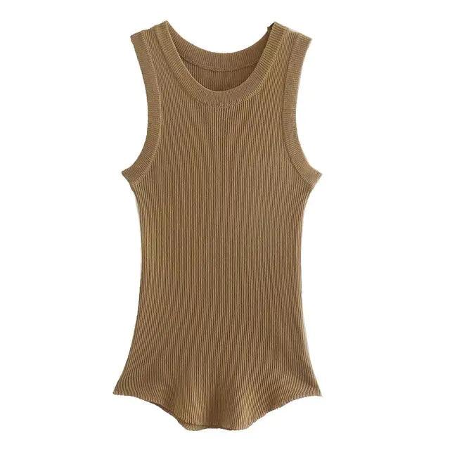 Flaunt your style in this vintage-inspired ribbed knit tank top. It's made from a soft and stretchy material that will hug your curves in all the right places. The fitted silhouette is accented by a feminine O-neck and sleeveless cut. Perfect for layering or wearing on its own, this tank top will become a staple in your wardrobe. Dress it up with a blazer for a chic work look or wear it with jeans for a casual weekend outfit.