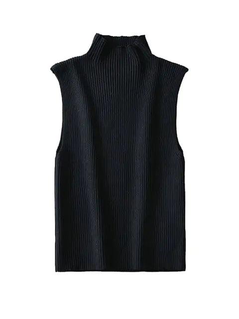 Sleeveless Ribbed Knit High Neck Top is the basic essential you need in your wardrobe. It is vintage, chic and perfect for any occassion. The high neckline is both flattering and fashionable, while the ribbed knit fabric is comfortable and figure-hugging. This top looks great tucked into a skirt or jeans, or worn on its own as a statement piece. Whether you dress it up or down, the Sleeveless Ribbed Knit High Neck Top is sure to become a staple in your wardrobe.